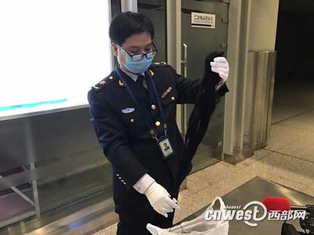 西安咸阳机场出入境检验检疫局科长杨安宁:“这个人发可能带有潜在的公共卫生危险,可能造成人体传染病传播的可能,所以我们截流以后进行检疫处理,我们叫微生处理,截留以后按照国家总局的2015年第160号《出入境特殊物品卫生检疫管理规定》进行无害化处理以后我们将销毁。”